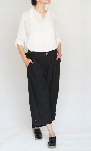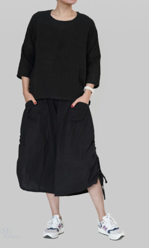 توضیحات: بلوز اورسایز الیت گشاد است. یک جیب دارد. یقه‌ی آن هفت است. جنس آن بسیار سبک و راحت است. آستین آن گشاد است. با شلوار هالیس، ابدیتوری و شلوار میس توصیه می‌شود.